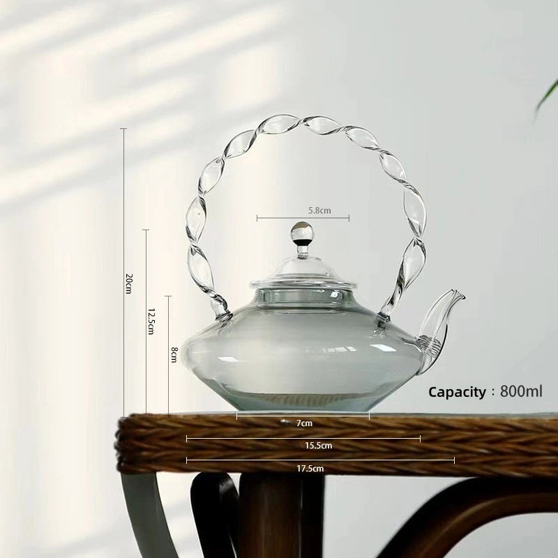 Borosilicate Glass Teapot with Spiral Handle:Ruyi